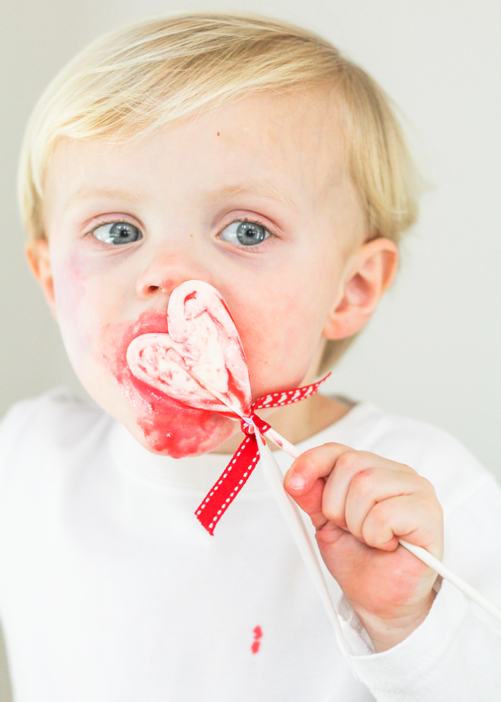 John Davis gladly volunteered to be my taste tester for these Valentine’s candy cane heart lollipops. <3